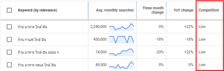 • จุดเด่น: เป็นเครื่องมือฟรีจาก Google โดยตรง ข้อมูลมาจากแหล่งที่น่าเชื่อถือที่สุด (Google Search) สามารถให้ข้อมูลปริมาณการค้นหา และระดับการแข่งขันได้ในช่อง Competition (High,Low) แม้ว่าจะไม่ได้ให้ค่า KD เป็นตัวเลขโดยตรงเหมือนเครื่องมือเสียเงิน แต่ก็เป็นจุดเริ่มต้นที่ดีเยี่ยมในการทำ Keyword Research