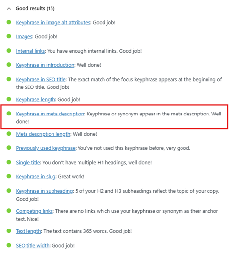 - เขียนให้ดึงดูด น่าสนใจ โดยเขียนให้เนื้อหาของเรามีความชัดเจน กระชับ ให้ผู้อ่านได้ประโยชน์และดึงดูดให้คนคลิกเข้ามายังเว็บไซต์ของเรา ไม่เขียนแบบยืดยาวมากเกินไปเพื่อไม่ให้เนื้อหาขาดไปหรือไม่แสดง Keyword หลักในหน้า Meta description